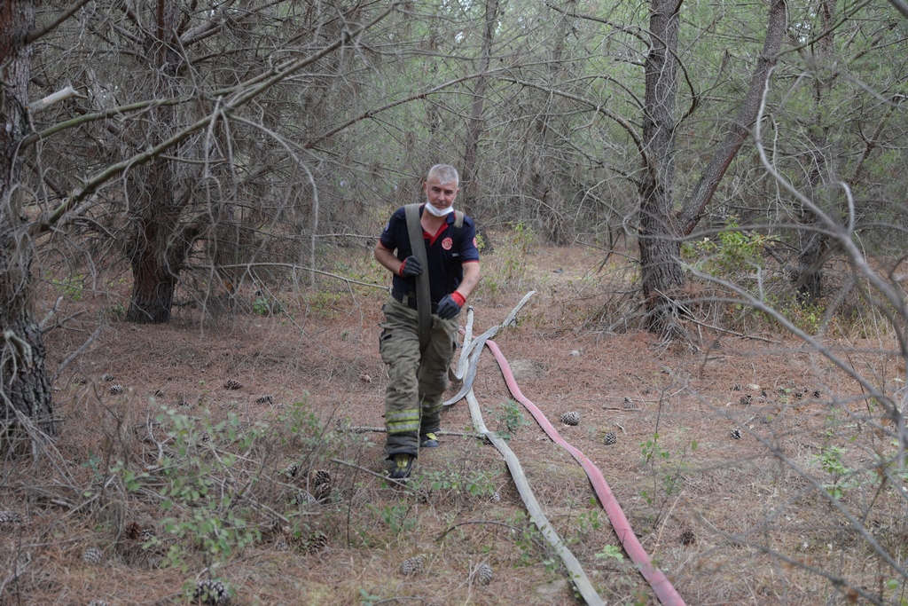 A fire broke out in the grassland and forest area near the pond in Çanta Balaban Neighborhood.