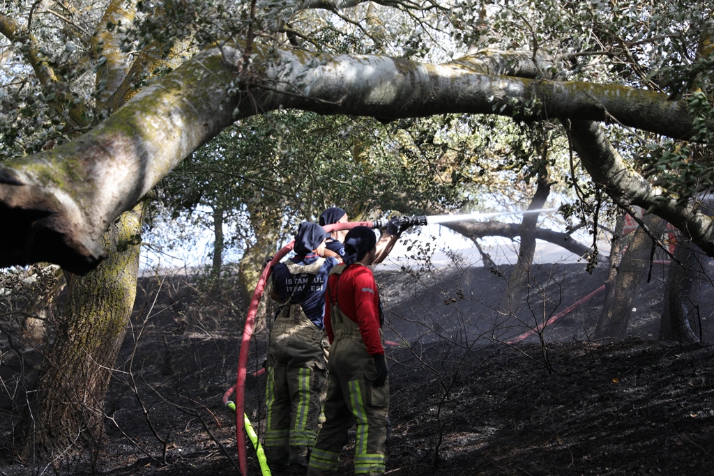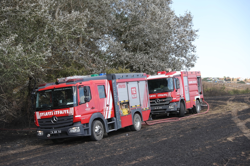 Following reports received around 1:18 p.m., firefighters from Çanta, Değirmenköy, Büyükçavuşlu, Silivri, Çatalca, Beylikdüzü, Bağcılar, Şişli, and Gümüşyaka stations were dispatched to the scene. Our teams who arrived quickly brought the fire under control and extinguished it.