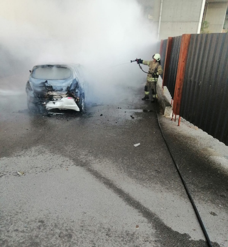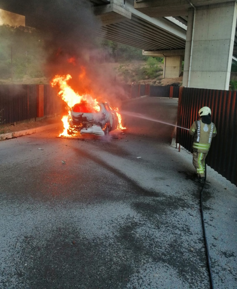 A fire broke out in a vehicle traveling on Ekinezya Street in Kurna Neighborhood.