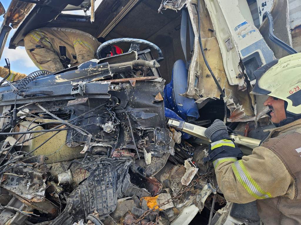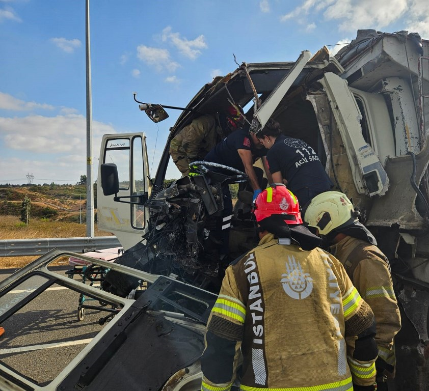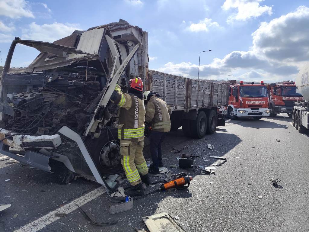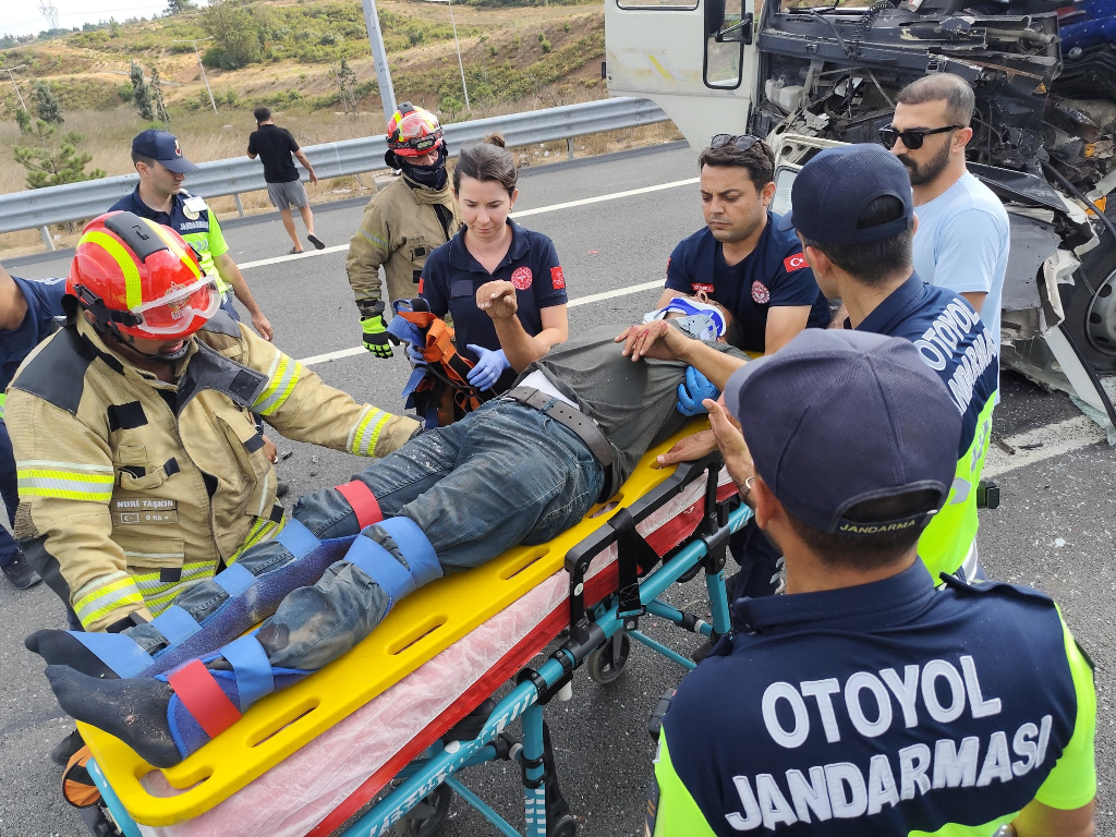 A traffic accident involving a truck and a semi-truck on the Northern Marmara Highway, near the Istanbul Park area in the Akfırat Neighborhood of Tuzla, en route to Ankara, left one person trapped inside. The Yenişehir fire team was dispatched to the scene following reports of the accident around 4:13 pm. Our team arrived quickly and worked to extricate the trapped passenger from the vehicle. Paramedics transported the passenger to the hospital.