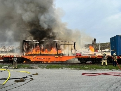 A fire broke out in a freight car located inside the terminal on 1501st Street in Küçükçekmece's İstasyon Neighborhood. Firefighters from Sefaköy, Bahçelievler, and Küçükçekmece stations were dispatched to the scene following reports at approximately 15:57. The fire was extinguished quickly after the crews arrived.
