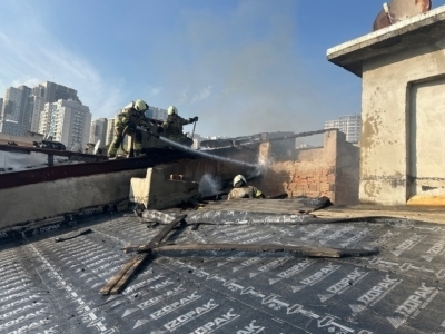 A fire broke out on the roof of a building located on 1953rd Street in the Mehterçeşme Neighborhood.