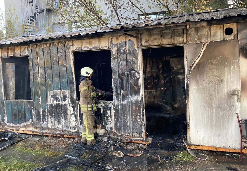 A fire broke out in a container located on Mezarlık Yolu Street in Büyükbakkalköy Neighborhood.