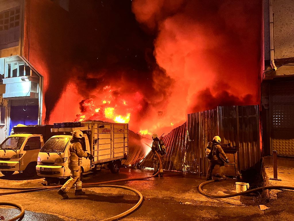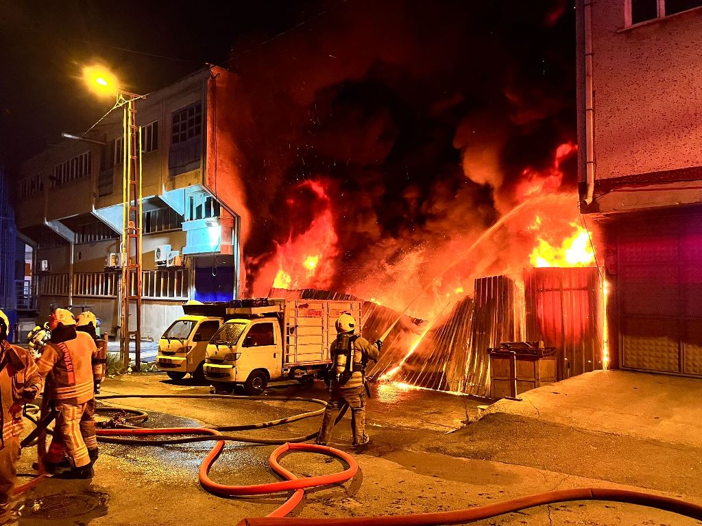 Küçükçekmece Halkalı Merkez Mahallesi Sarmaşık Sokak üzerinde bulunan hurda malzeme deposunda yangın meydana geldi.