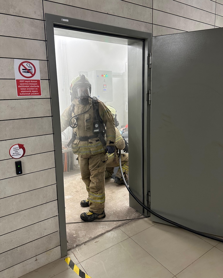 Metro İstanbul çalışanları ile birlikte Kadıköy Ayşe Kadın İstasyonun'da yangın tatbikatı yapıldı. Uyarlanan senaryo gereği İstasyon içerisinde farkedilen yangın olduğu ihbarı tarafımıza ulaştı. Alınan ihbarlar üzerine olay yerine Kadıköy İtfaiye ve 112 Hızır Acil Ambulans ekiplerimiz sevk edildi. Kısa sürede olay yerine ulaşan ekiplerimizin müdahalesi sonucu yangın söndürüldü. Olay sonrasında Metro İstanbul personelinin de söndürme pratiği yapması ve ardından çekilen hatıra fotoğrafıyla tatbikat sonlandırıldı.
