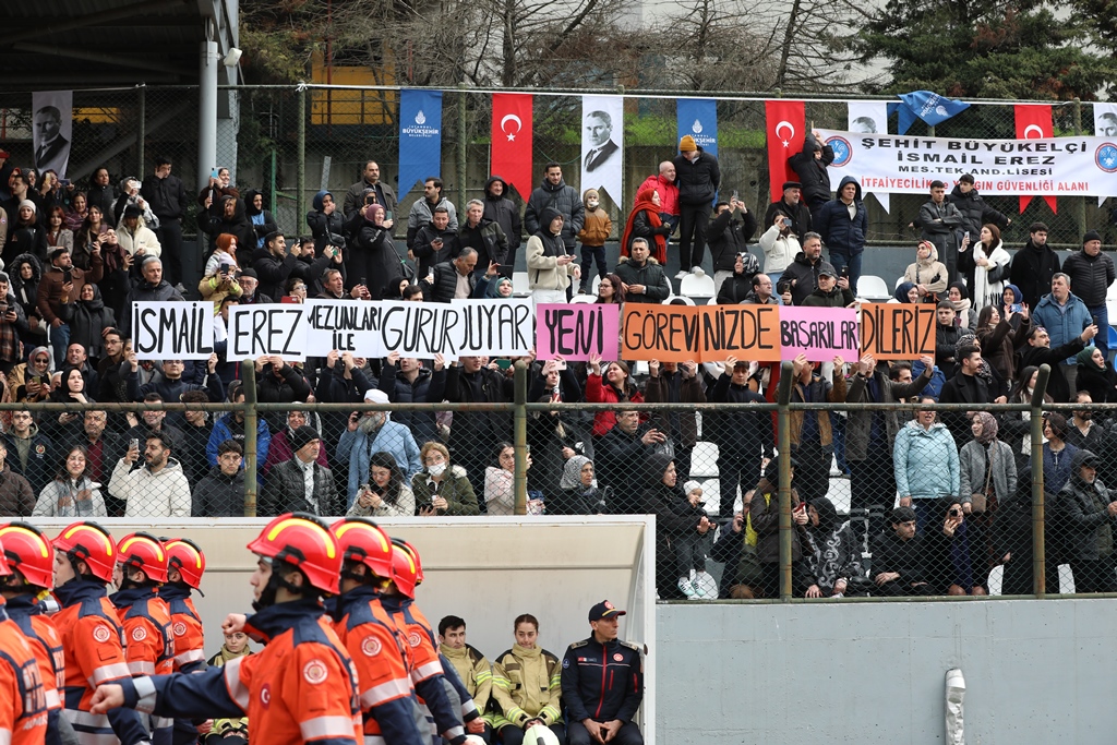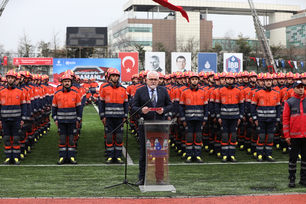 İstanbul Büyükşehir Belediyesi (İBB) İtfaiye Dairesi Başkanlığı tarafından düzenlenen “Temel İtfaiye Er Eğitimi”ni tamamlayan 78’i kadın, 500’i erkek olmak üzere, toplam 578 yeni itfaiyeci için Cebeci Spor Kompleksi’nde mezuniyet töreni gerçekleştirildi. Saygı duruşunda bulunulması ve İstiklal Marşı’nın okunmasıyla başlayan düzenlenen mezuniyet töreninde, itfaiyeci duası edilip, çeşitli spor gösterileri sergilendi. Törende, İBB Başkanvekili Nuri Aslan ve İBB Genel Sekreter Yardımcısı Remzi Albayrak da birer konuşma yaptı. Konuşmasına; seçilmiş İBB Başkanı, CHP’nin ve 25,1 milyon vatandaşın cumhurbaşkanı adayı Ekrem İmamoğlu’nun Silivri’den yeni mezun itfaiyecilere yolladığı selamı ileten Aslan, “Biliyorum ki bugün burada olmayı çok isterdi. Ama inanıyorum ki çok yakında özgürlüğüne kavuşacak ve buluşacağız,” dedi.