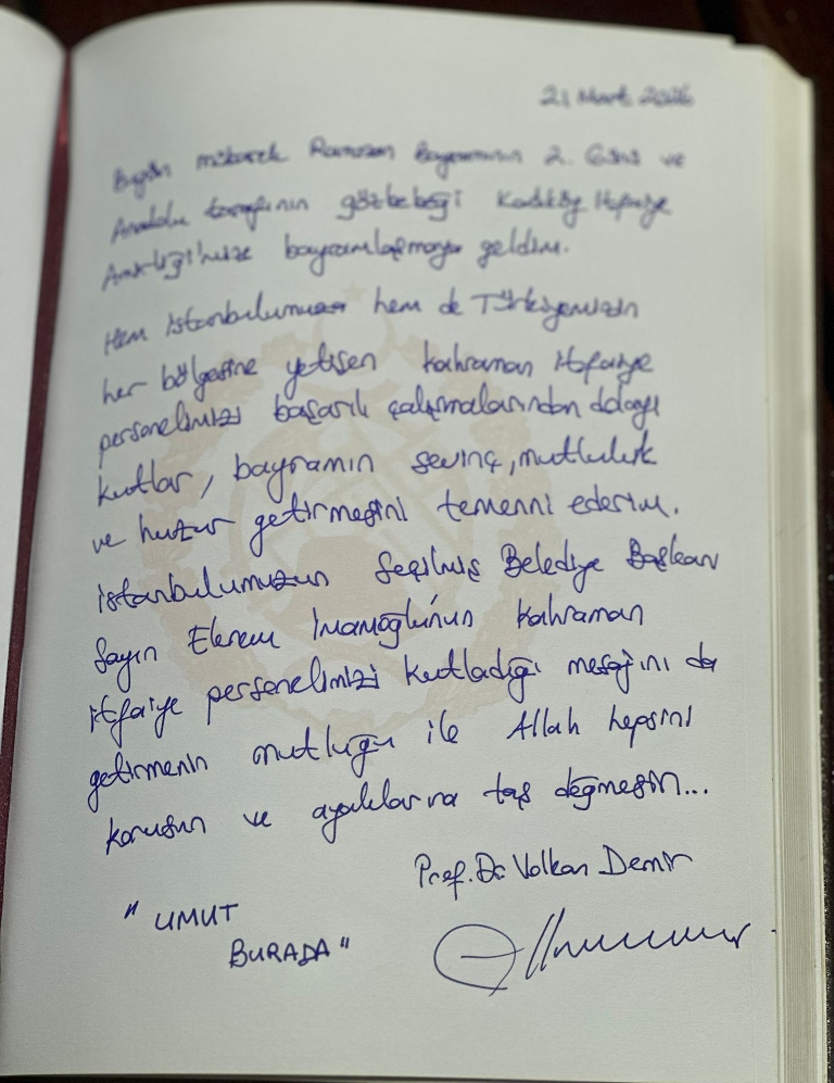 İtfaiye Daire Başkanlığımızda ve çeşitli istasyonlarımızda yapılan bayramlaşma programına İBB Başkan Vekilimiz Nuri ASLAN, Genel Sekreterimiz Prof. Dr. Volkan DEMİR, İtfaiye Daire Başkanımız Remzi ALBAYRAK, Bölge müdürlerimiz, müdür yardımcılarımız ve mesai arkadaşlarımız katıldı.