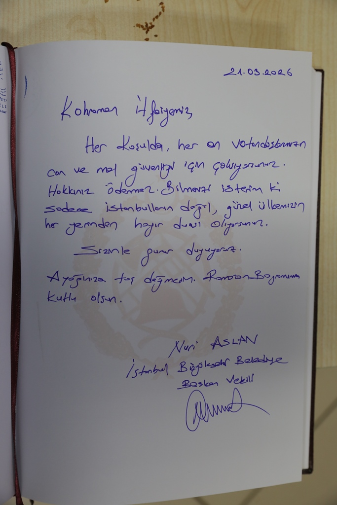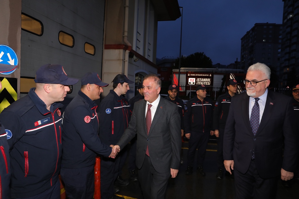 Başkan Vekilimiz Nuri ASLAN; itfaiyenin, belediyenin en önemli birimlerinden biri olduğunu, itfaiyeci arkadaşlarımızın görevlerini yaparken gösterdikleri üstün gayret ve çalışmalar dolayısıyla teşekkürlerini ilettiğini söyledi. İstanbul Büyükşehir Belediyesi’nin 7 gün 24 saat kesintisiz hizmet verdiğini ve “Bayramlar ailelerle birlikte yaşanır. Ama bizler mesailerimizin başında hizmet etme arzusu ve heyecanı içerisindeyiz” diyerek sözlerine devam etti.
