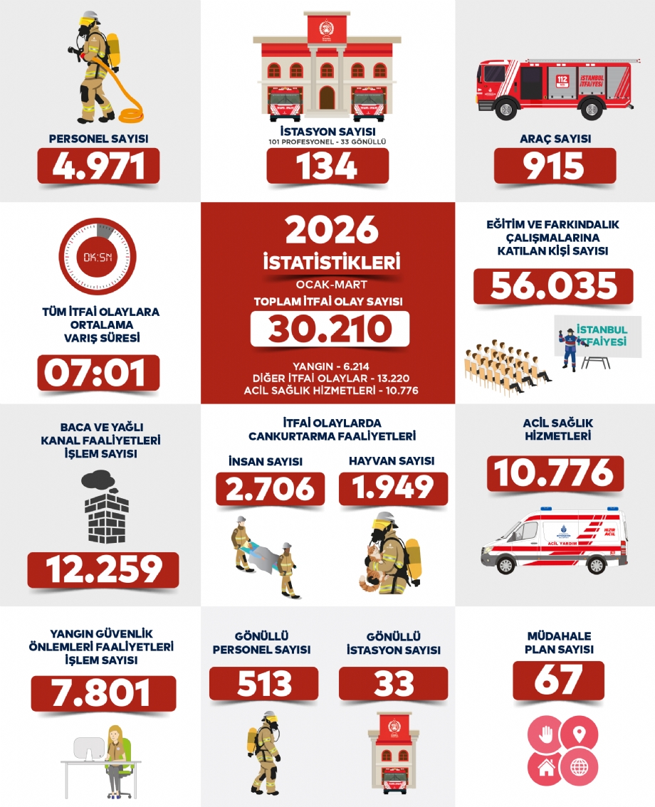 Rapor kapsamında; yangın türleri, olaylara müdahale süreleri, eğitim ve farkındalık faaliyetleri, denetim hizmetleri ve plaj cankurtaran faaliyetleri gibi kritik başlıklara dair istatistikler yer almaktadır. İstanbul’un hızla değişen yapısına karşı İtfaiye Daire Başkanlığı’nın gösterdiği performansı ve gelişimi rakamlarla incelemek için aşağıdaki kitapçığa tıklayınız.