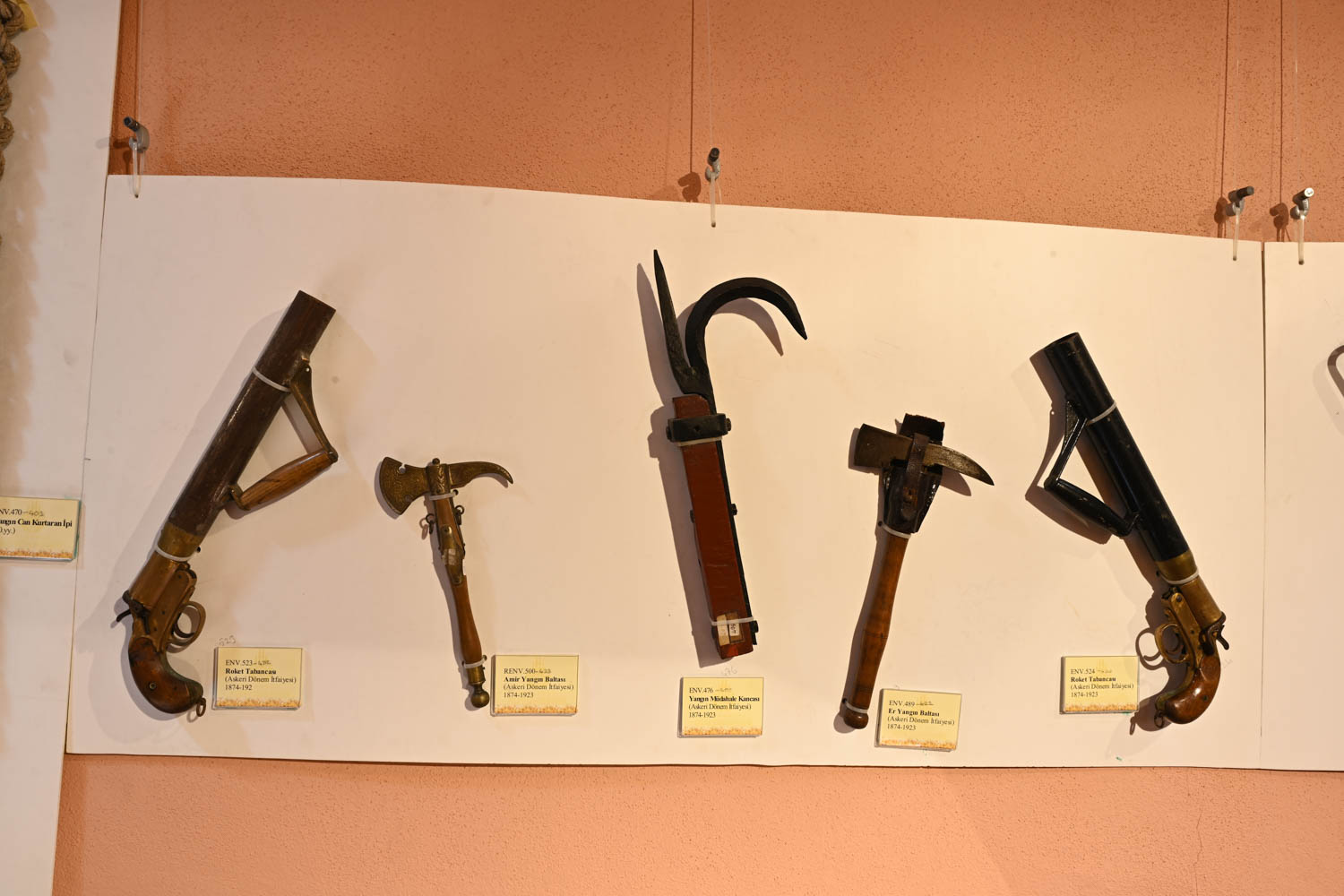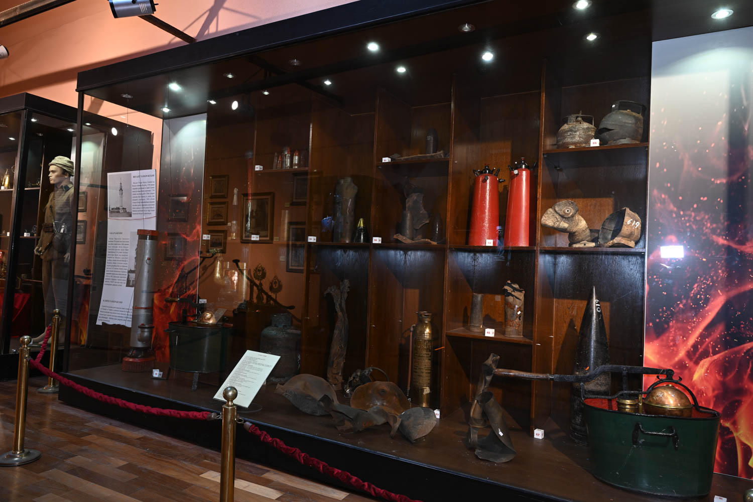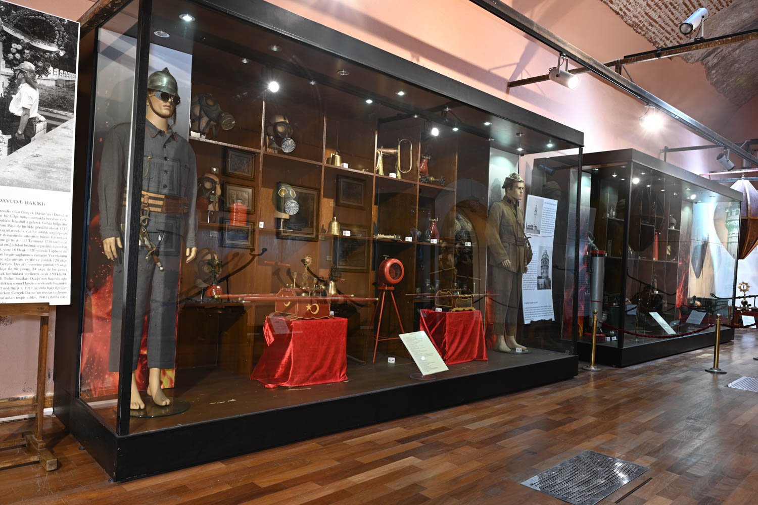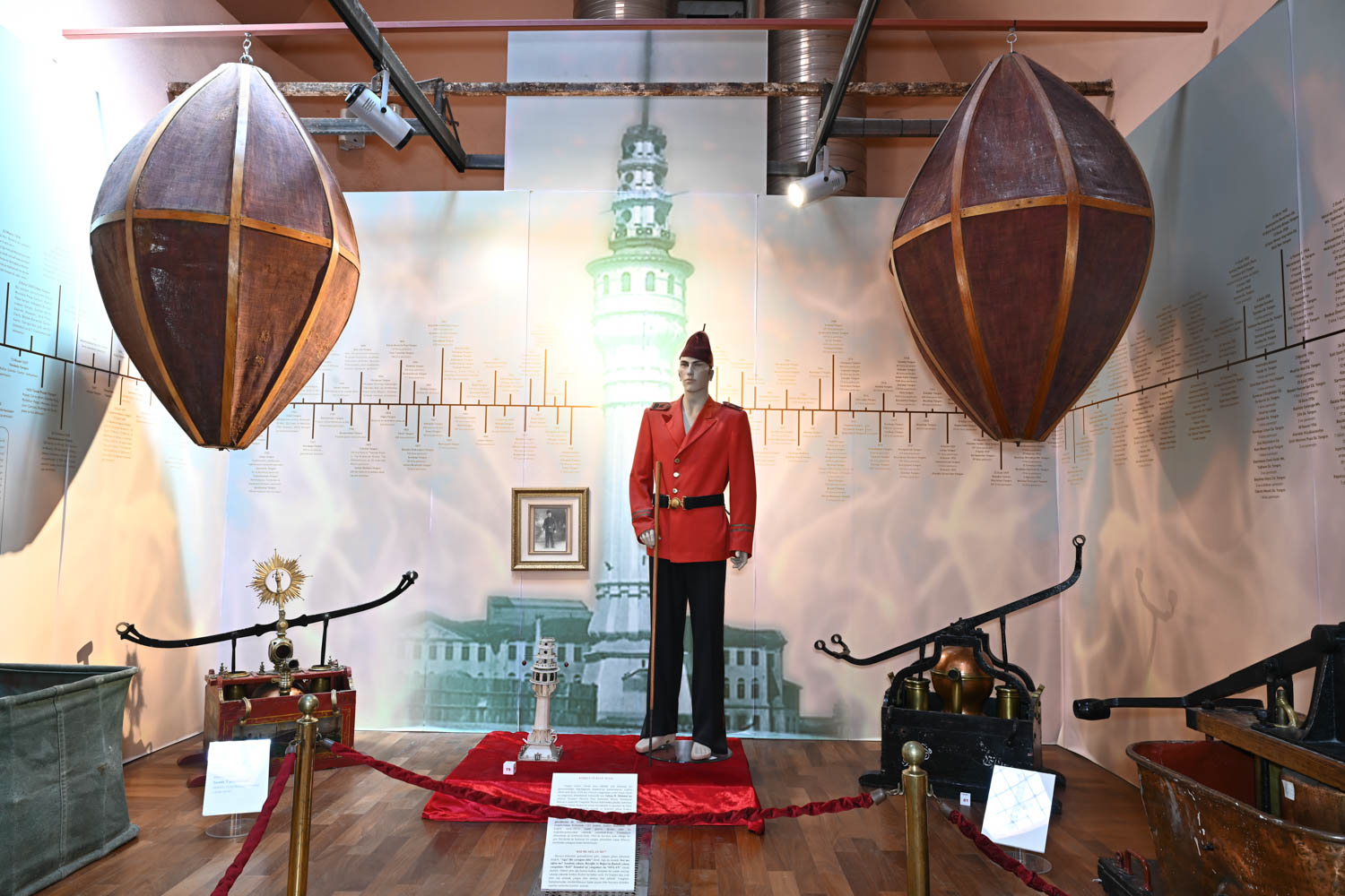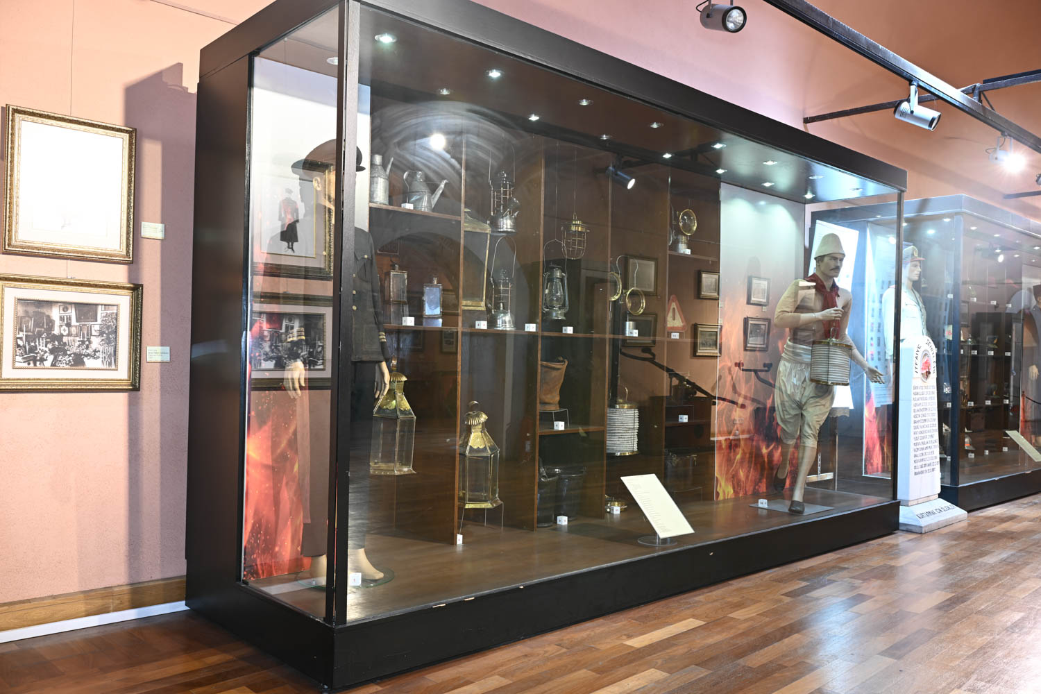 Ekipman ve Teçhizat: Askeri itfaiye dönemine ait kıyafetler, amir yangın baltaları, deri kovalar, bez sarnıçlar, mum ve karpit fenerleri