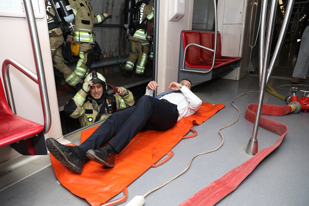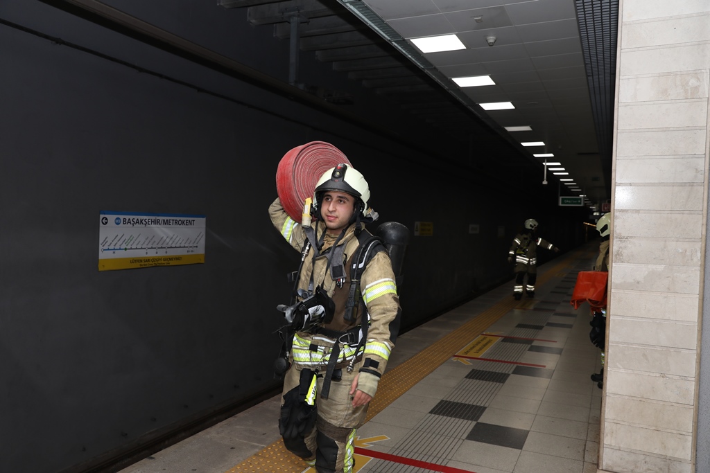 Metro İstanbul çalışanları ile birlikte Başakşehir Metrokent İstasyonun'da yangın tatbikatı yapıldı. Uyarlanan senaryo gereği İstasyon içerisinde farkedilen yangın olduğu ihbarı tarafımıza ulaştı. Alınan ihbarlar üzerine olay yerine Başakşehir İtfaiye ve 112 Hızır Acil Ambulans ekiplerimiz sevk edildi. Kısa sürede olay yerine ulaşan ekiplerimizin müdahalesi sonucu yangın söndürüldü. Olay sonrasında Metro İstanbul personelinin de söndürme pratiği yapması ve ardından çekilen hatıra fotoğrafıyla tatbikat sonlandırıldı.