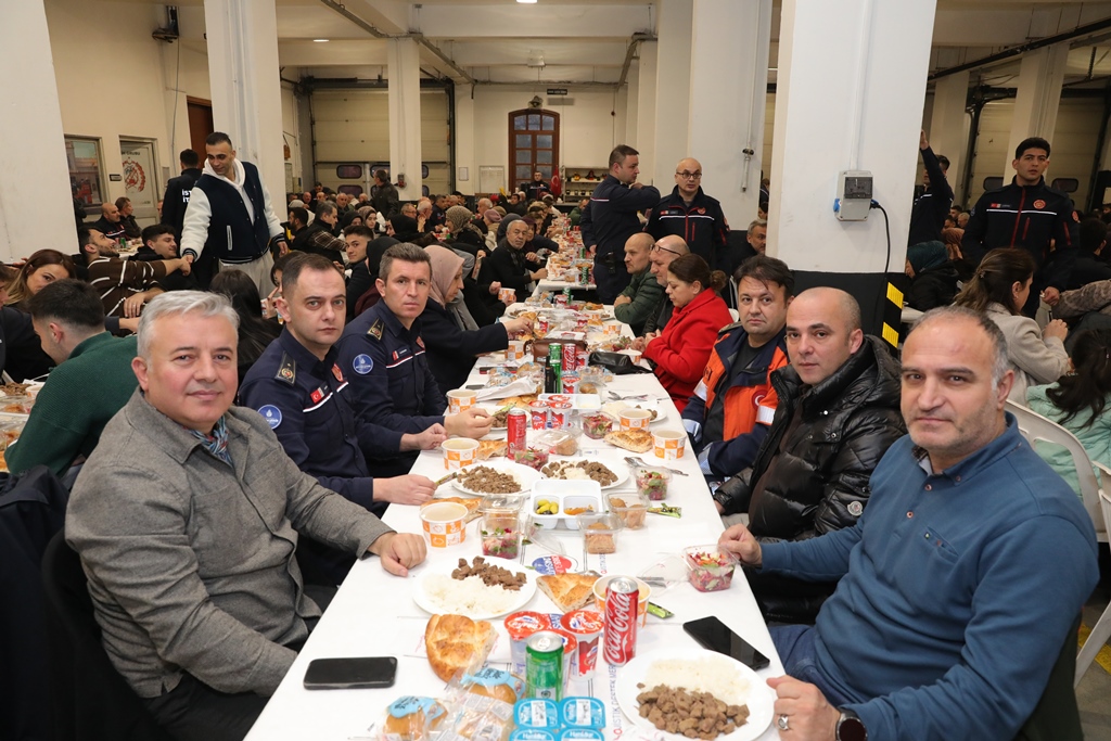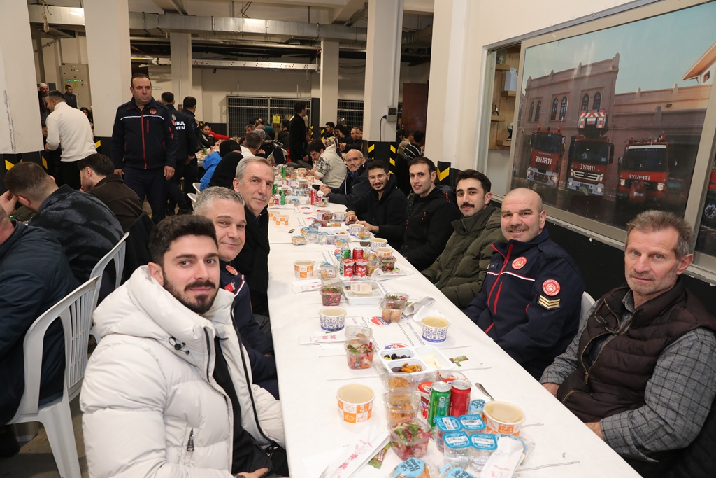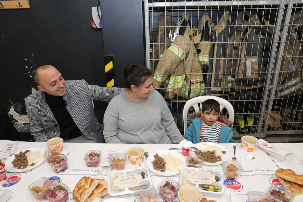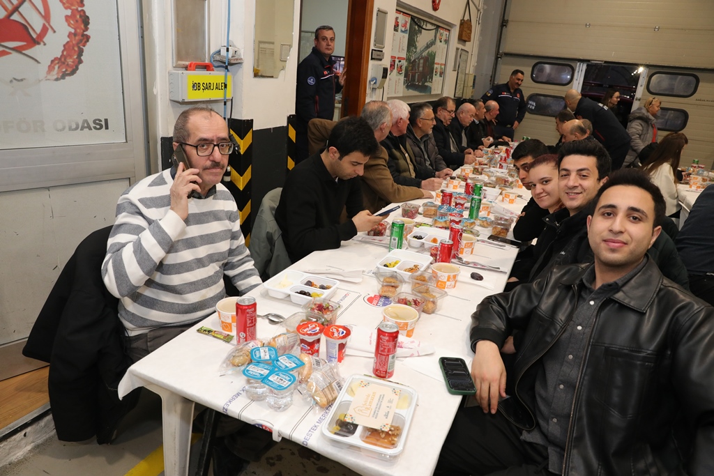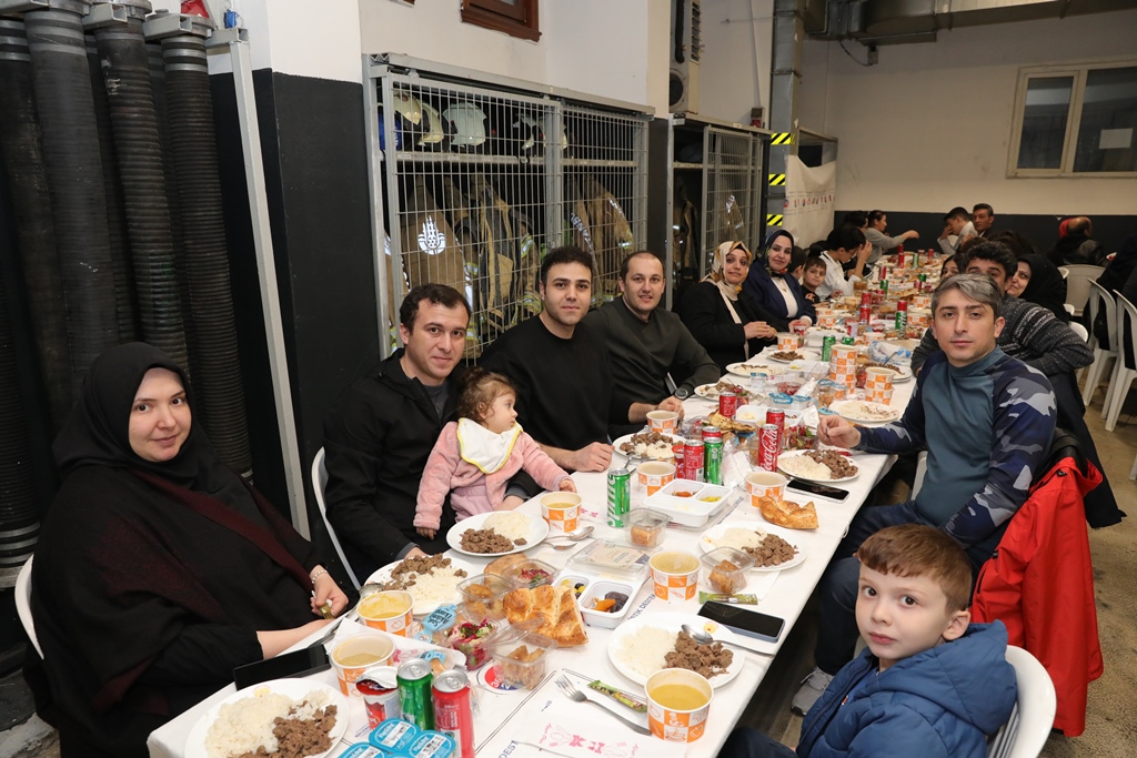 Fatih İtfaiye İstasyonumuzda çalışan personelimizin katılımıyla gerçekleşen iftar yemeğine, İtfaiye Dairesi Başkanımız Remzi ALBAYRAK, itfaiye bölge müdürlerimiz ve idarecilerimiz, itfaiye çalışanlarımız, çok değerli aileleri ve emekli itfaiyeci ağabeylerimiz katıldı. Samimi aile ortamının olduğu yemekte, açılan oruçların ardından dualar edildi.
