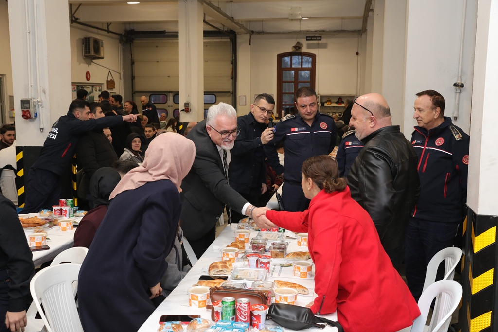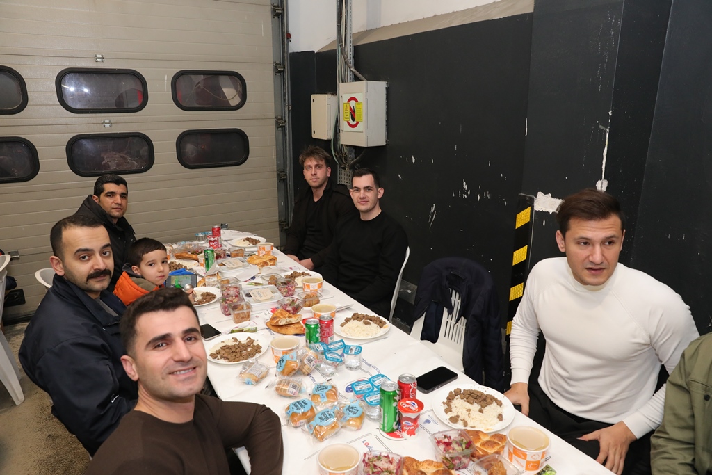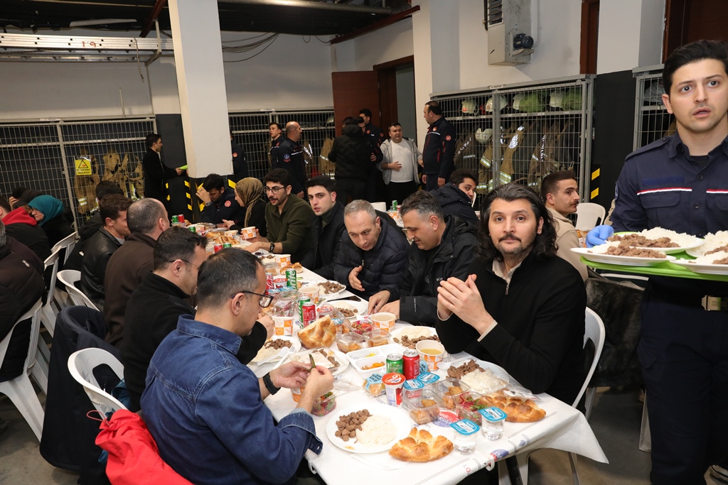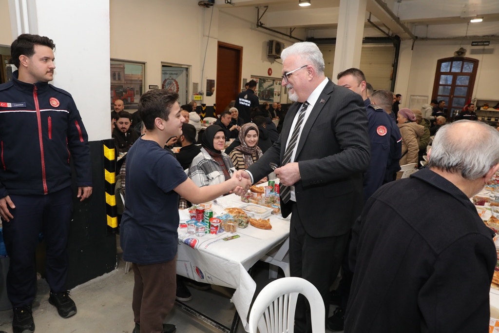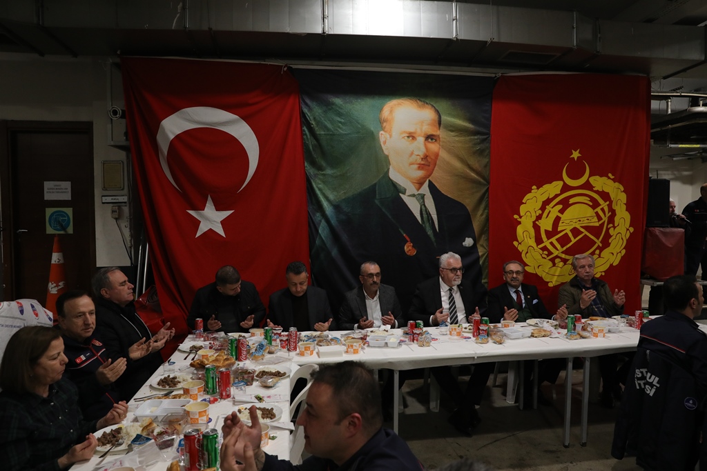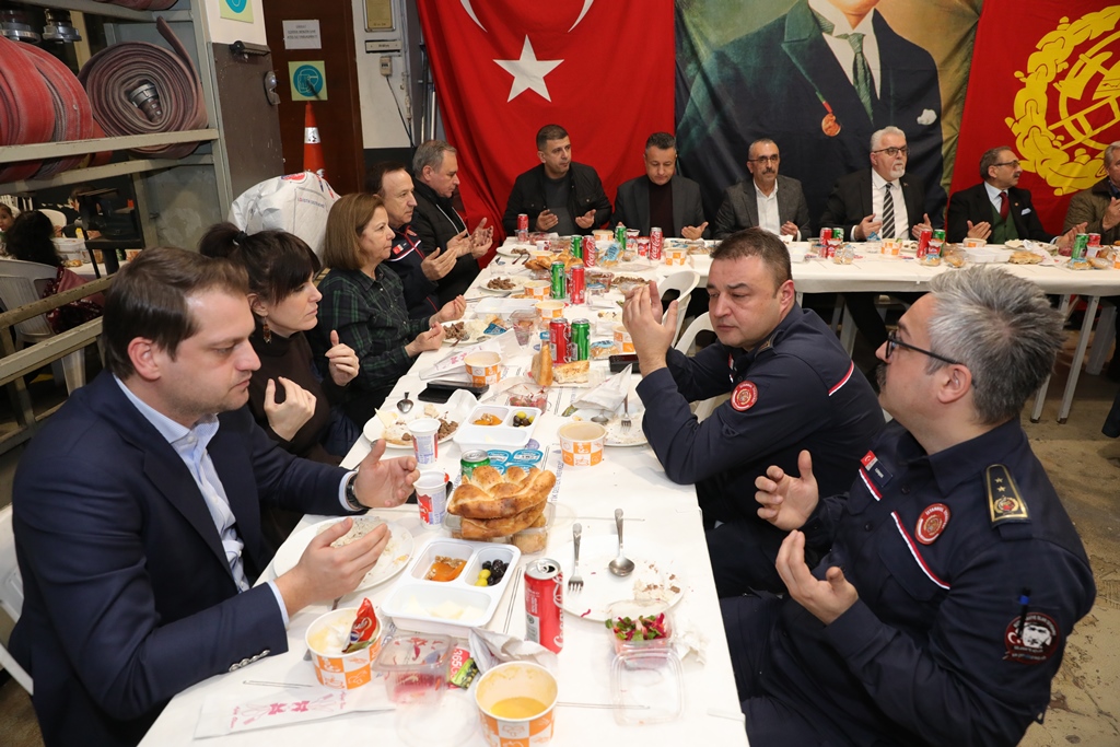 Fatih İtfaiye İstasyonumuzda çalışan personelimizin katılımıyla gerçekleşen iftar yemeğine, İtfaiye Dairesi Başkanımız Remzi ALBAYRAK, itfaiye bölge müdürlerimiz ve idarecilerimiz, itfaiye çalışanlarımız, çok değerli aileleri ve emekli itfaiyeci ağabeylerimiz katıldı. Samimi aile ortamının olduğu yemekte, açılan oruçların ardından dualar edildi.